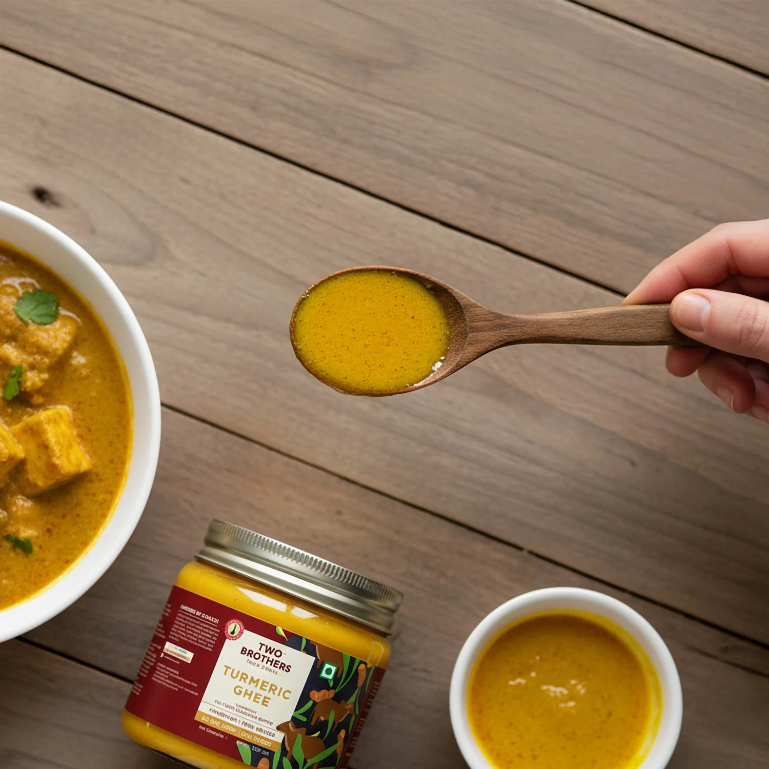 Made in small batches, our turmeric ghee is free from additives, and is delivered right to your doorstep. So, whether you’re stirring it into your morning oatmeal or drizzling it over your favorite curry, our pure Turmeric Ghee brings you the healing warmth of tradition with every spoonful. It`s like a gift of flavor and wellness, that feels just like home.