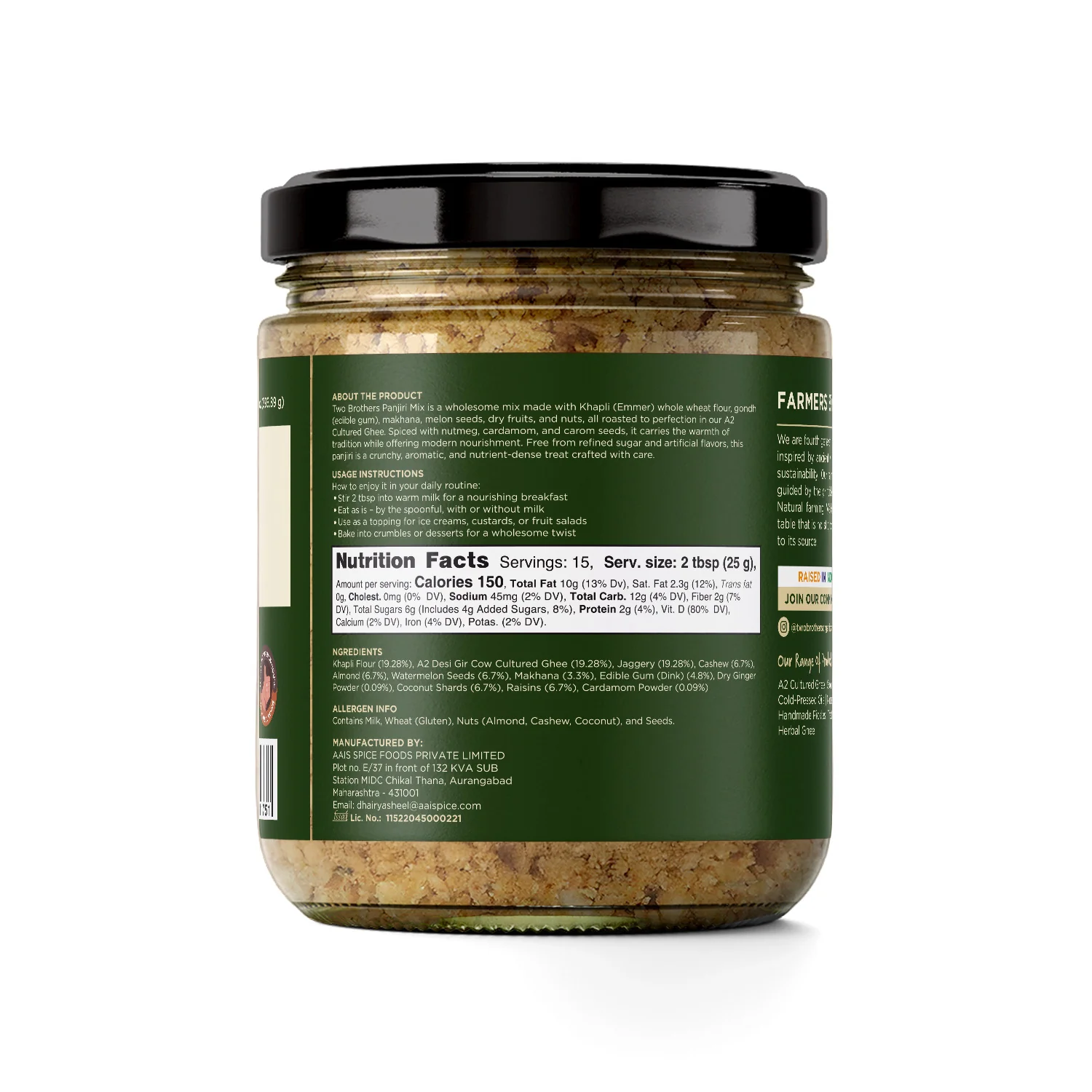 Our Panjiri Mix is more than just a snack! Made using Khapli (Emmer) Whole Wheat, slow-roasted Gondh (edible gum), Makhana, melon seeds, and a rich medley of dry fruits and nuts, this mix is a timeless treat crafted with care.